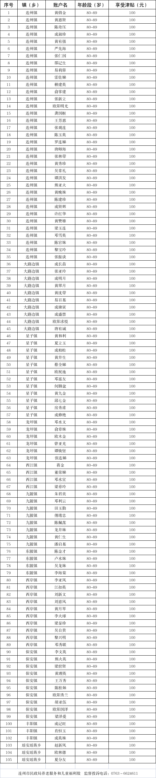 2026年2月新增80歲以上高齡老人津貼名單